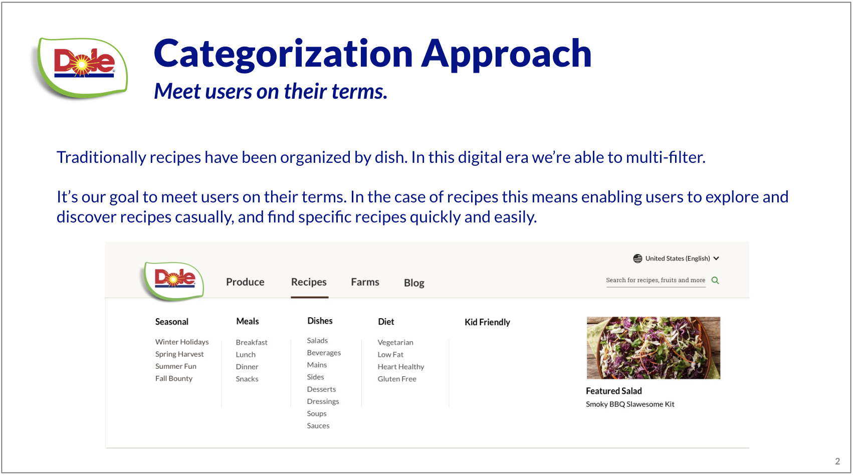 Created scalable content approach that addressed Dole's resource constraints while meeting diverse audience needs